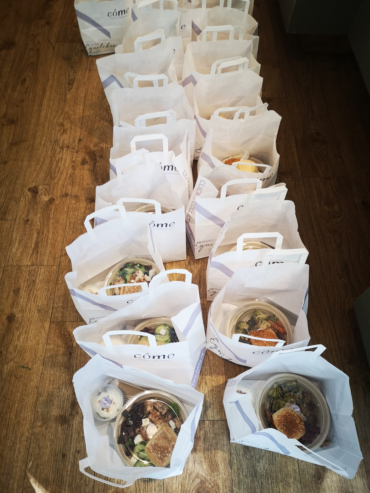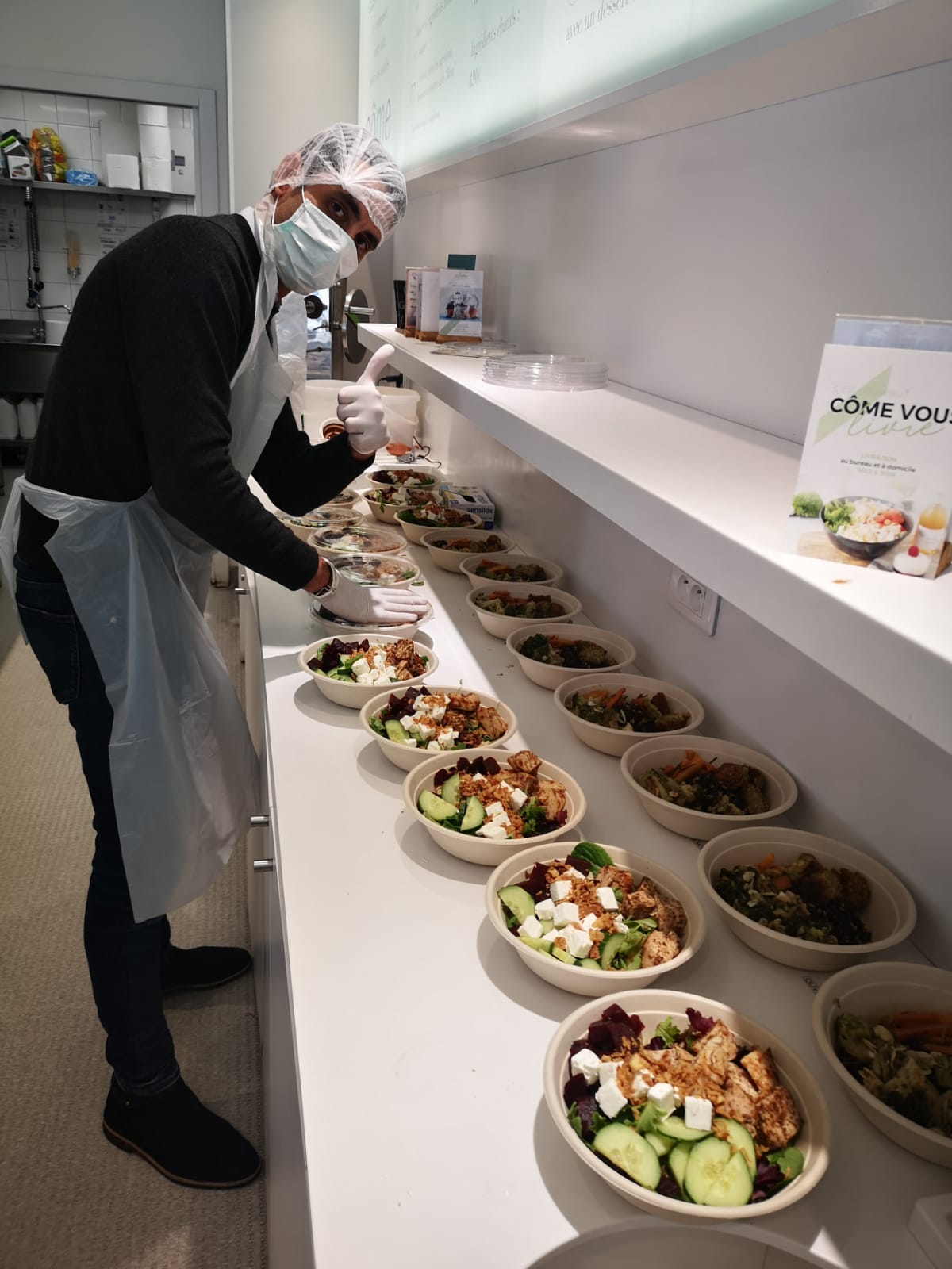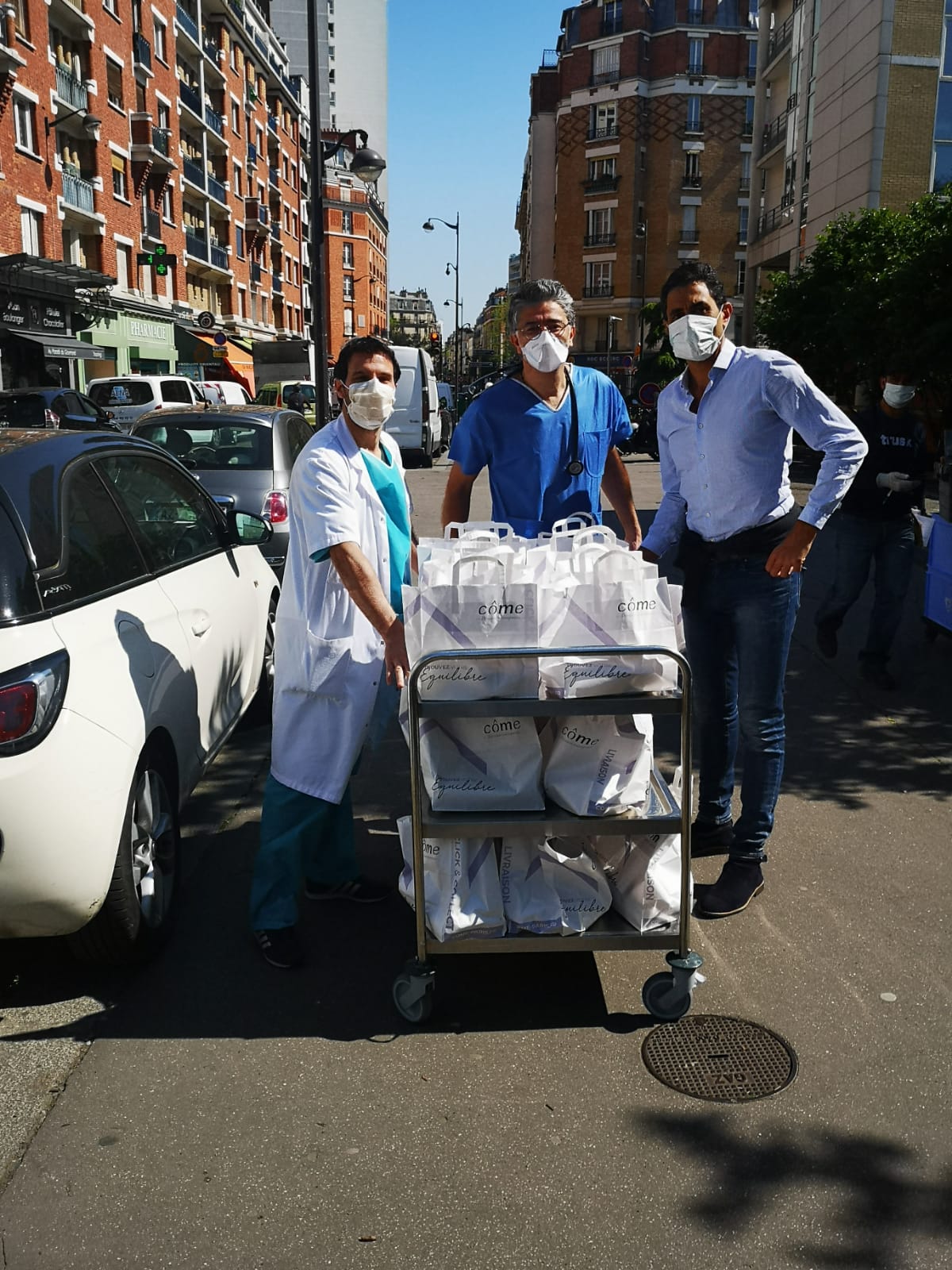 Despite the necessary closure of its facilities, a few volunteers went back to Côme restaurants during the quarantine to support the medical staff. Côme’s team contacted Doctor Philippe Azria, head of department at Saint Joseph Hospital and a childhood friend of the brand’s co-founder, Nabil Rhazali, to propose their services. Together, they decided to organize the delivery of 30 salads per week to help the hospital’s medical staff.